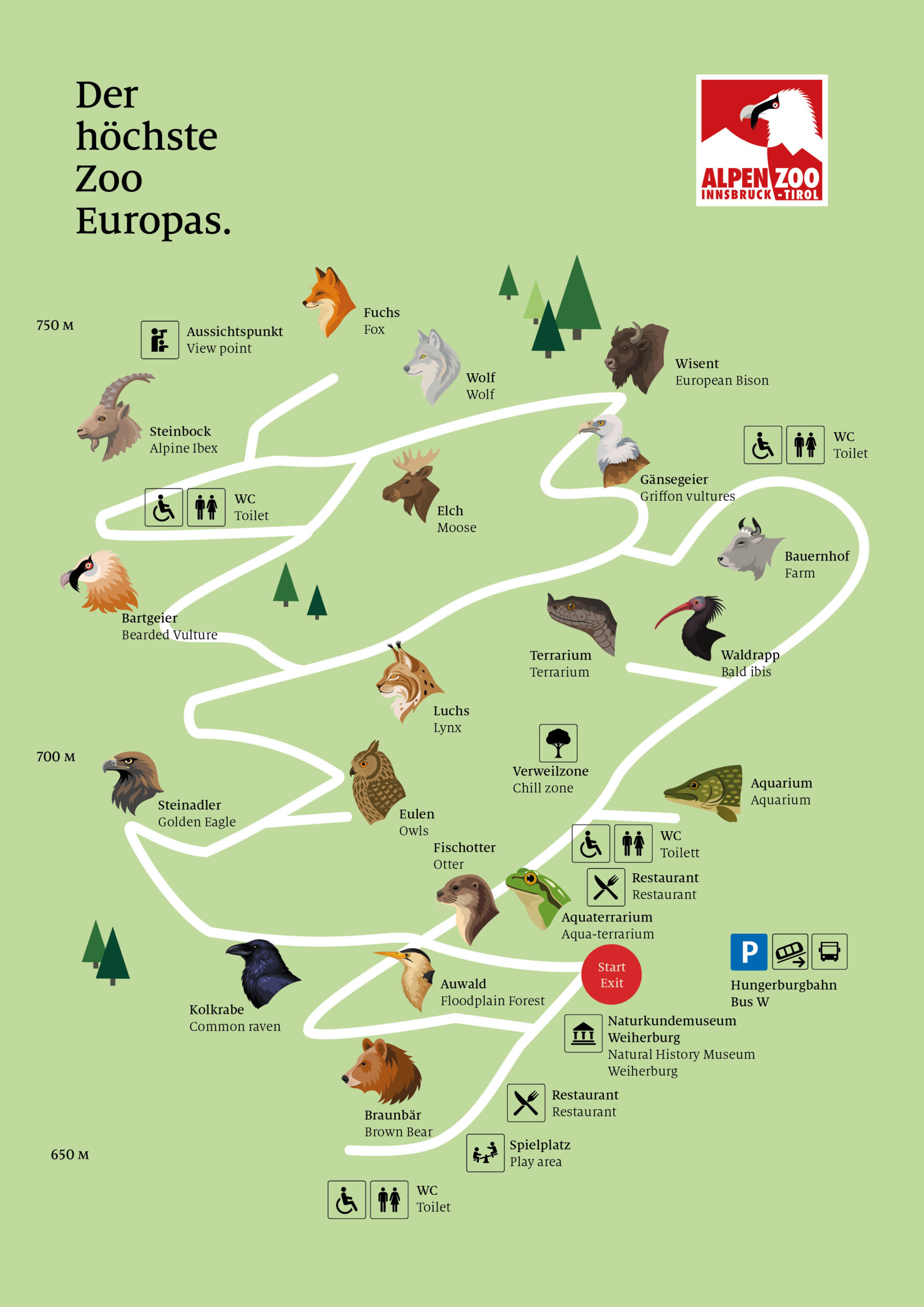 Il parco dello zoo si trova su un pendio e presenta anche tratti più ripidi. La maggior parte dei sentieri è asfaltata, ma alcuni gradini devono essere scalati. Il tour dura circa 2 o 3 ore.